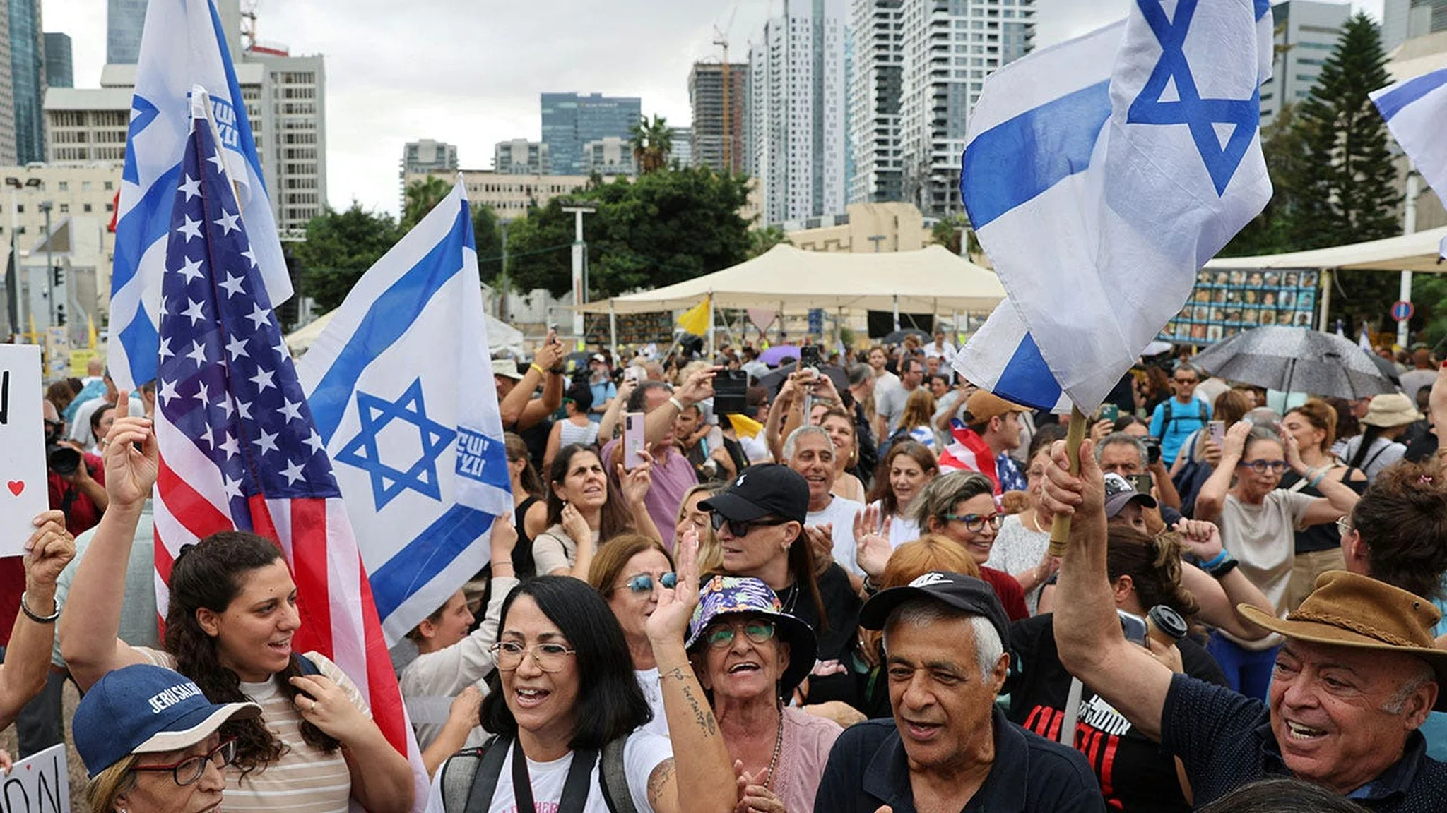 Famílias de reféns em Washington, nos EUA, reagiram à notícia do anúncio do presidente dos EUA Donald Trump sobre o acordo que trará todos os reféns de volta para casa em 08 de outubro de 2025.